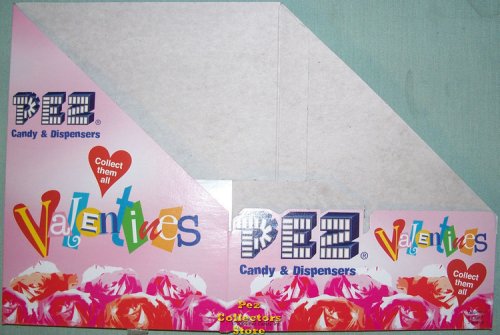 This is the Valentines PEZ graphic counter display box. This is the 12 count counter display box that has replaced the 24 count generic display boxes with individual header cards. The display boxes have awesome graphic detail on the sides and front of the boxes. Most of these counter displays wind up in the trash at stores, but those who collect pez paper items will want to add them to their collections! These are shipped flat and can be opened up for displaying with pez in them or left flat for a great looking display on the wall!
